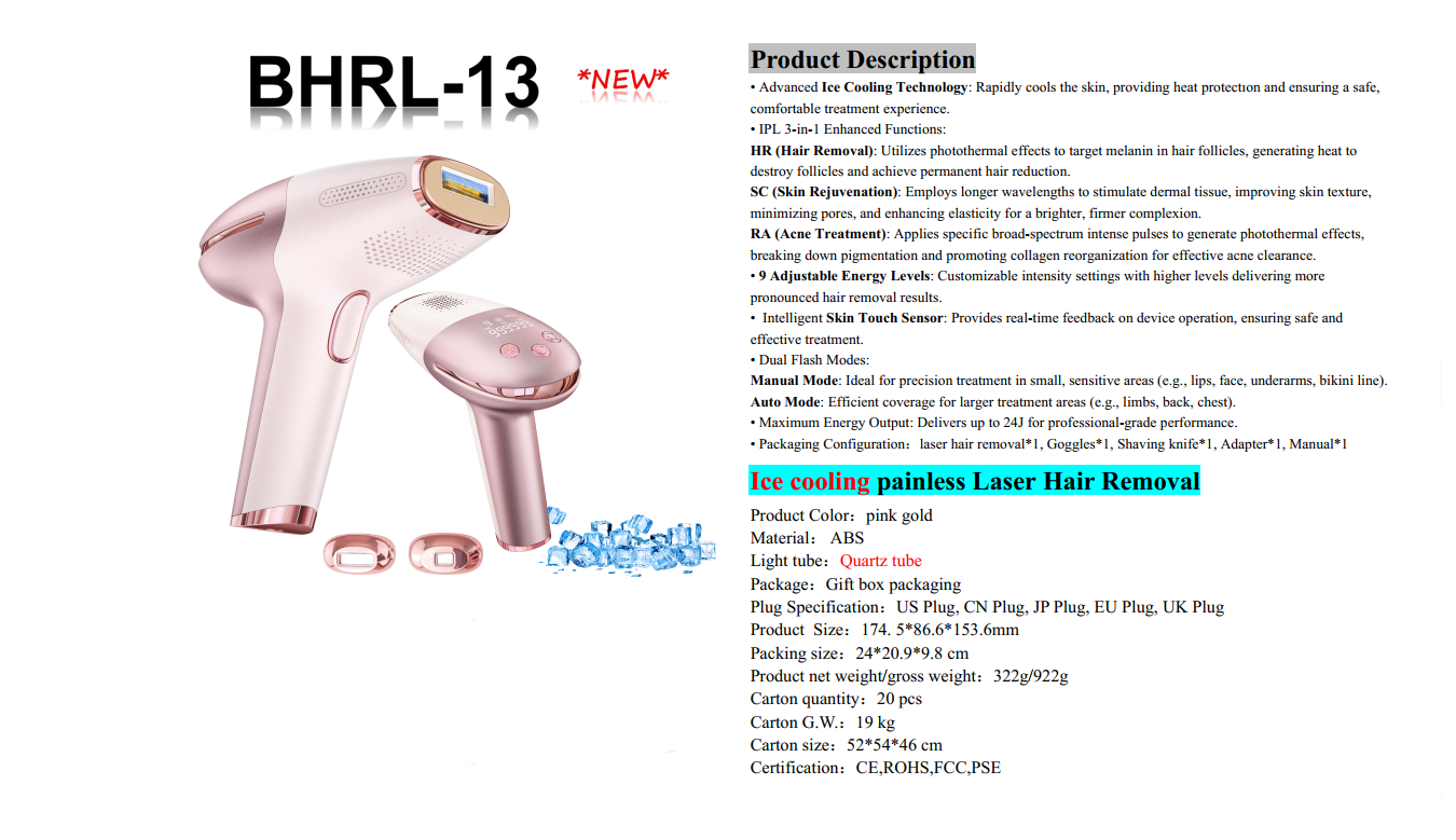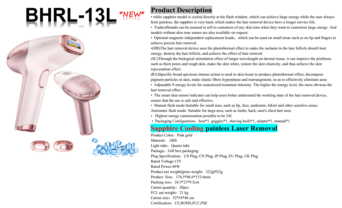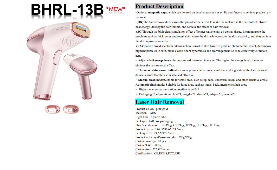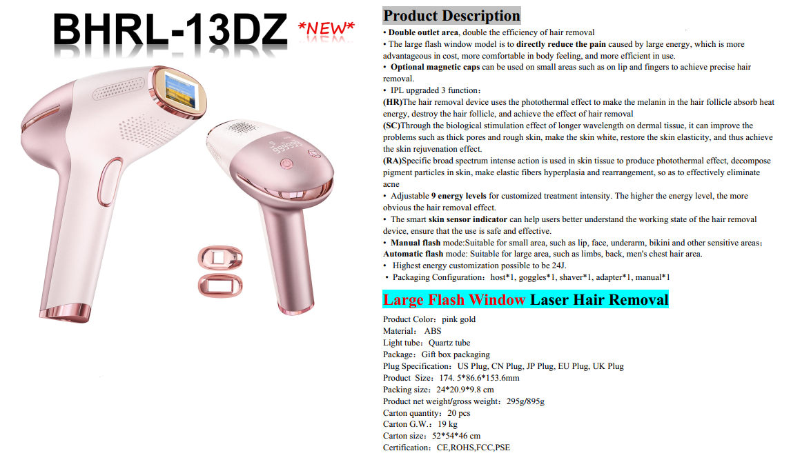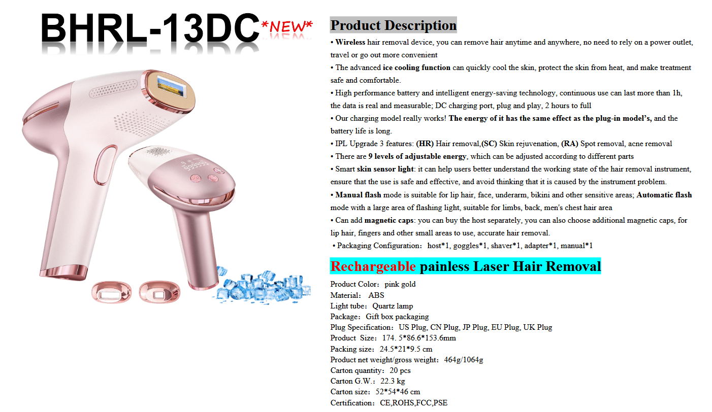 دستگاه لیزر خانگی حذف موهای زائد ۱ میلیون شات مدل BHRL-13