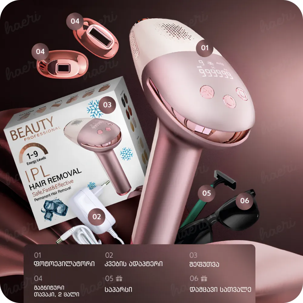 • 9 سطح انرژی قابل تنظیم: تنظیمات شدت قابل تنظیم با سطوح بالاتر که نتایج حذف موهای زائد برجستهتری را ارائه میدهند.